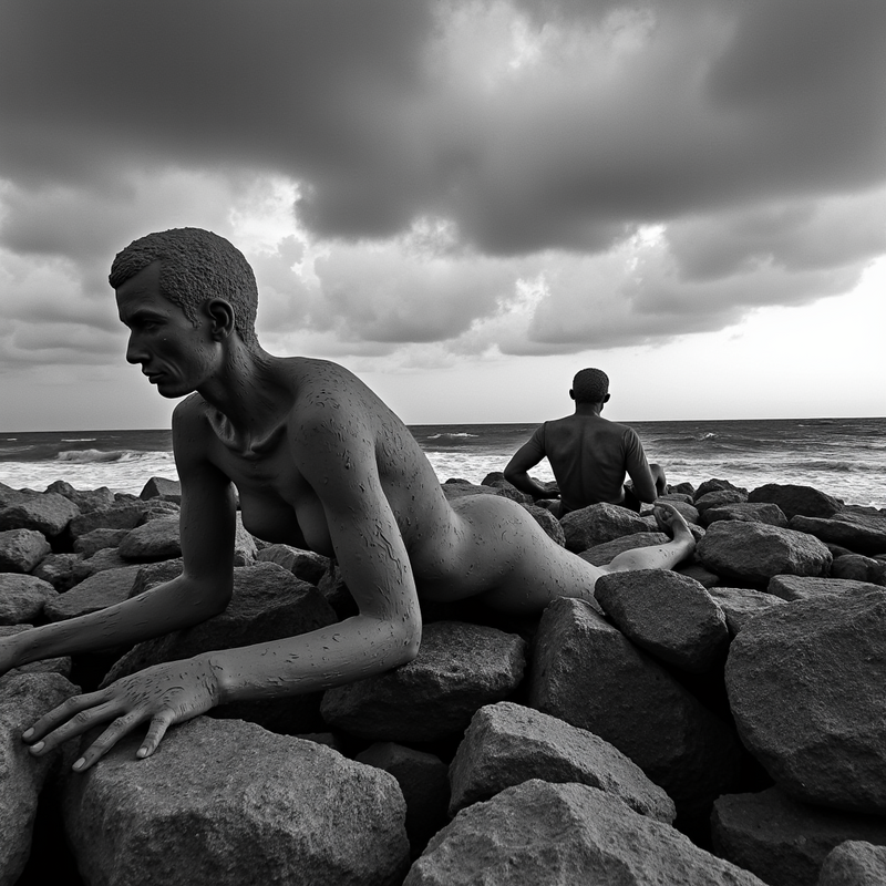 Using Ilia’s model trained on my small photo library, the shift from “people” to “human” again significantly affected the results. I avoided negative prompts and fixed the seed at 0 to ensure consistent outputs — important given my fragmented vision. The prdlst tag linked the image generation to Paradise Lost.